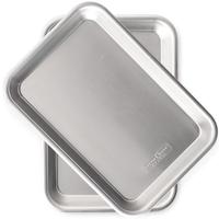 This versatile set of two pans is handy for a number of things. They're 1/8-sheet size, and made of even-heating aluminum, so they're ideal for al kinds of baking. Or, you can use them as rugged serving trays, indoors or out. Each pan measures 9.5" x 6.5" x 1"