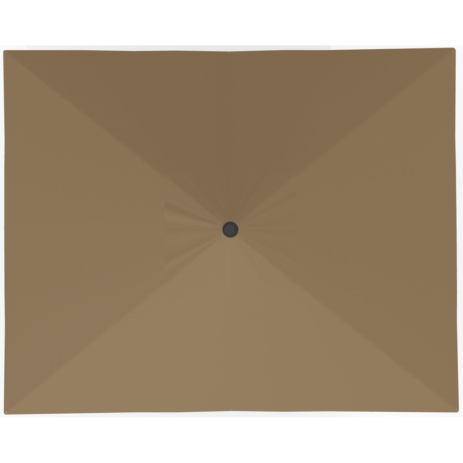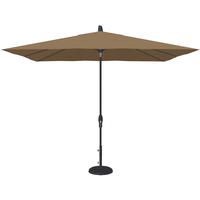 Stay cool in the summer sun under one of our patio umbrellas from Treasure Garden. These umbrellas are superb values, made with weatherproof fabrics, heavy-gauge, black-finished aluminum poles, rugged PVC frames, and zinc-plated hardware. The rectangular umbrellas feature a canopy that measures 8' x 10' for 80 sq. ft. of shade, with an easy-to-use crank handle that both opens the umbrella and tilts it, too, if you wish. Just crank to open and keep cranking to the desired tilt angle. The lift cord is made of rugged Kevlar mesh.The fabrics used are all 100% solution-dyed synthetics, resistant to both moisture and sun, and are woven of polyester or acrylic fibers. They will not rot, mildew nor fade and can be cleaned in place with soap and water. Each umbrella is supported by 8 ribs, features a single wind vent for stability and stands 109" tall. An umbrella stand is essential for safe use.
