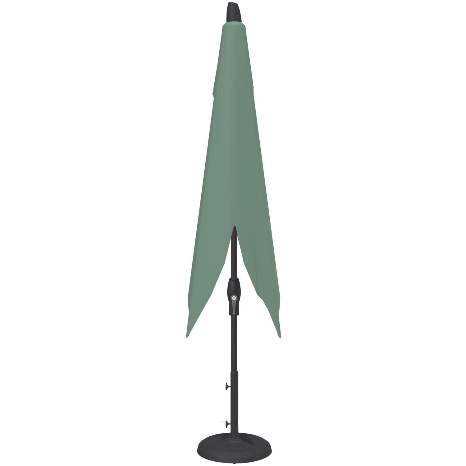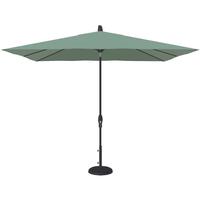 Stay cool in the summer sun under one of our patio umbrellas from Treasure Garden. These umbrellas are superb values, made with weatherproof fabrics, heavy-gauge, black-finished aluminum poles, rugged PVC frames, and zinc-plated hardware. The rectangular umbrellas feature a canopy that measures 8' x 10' for 80 sq. ft. of shade, with an easy-to-use crank handle that both opens the umbrella and tilts it, too, if you wish. Just crank to open and keep cranking to the desired tilt angle. The lift cord is made of rugged Kevlar mesh.The fabrics used are all 100% solution-dyed synthetics, resistant to both moisture and sun, and are woven of polyester or acrylic fibers. They will not rot, mildew nor fade and can be cleaned in place with soap and water. Each umbrella is supported by 8 ribs, features a single wind vent for stability and stands 109" tall. An umbrella stand is essential for safe use.
