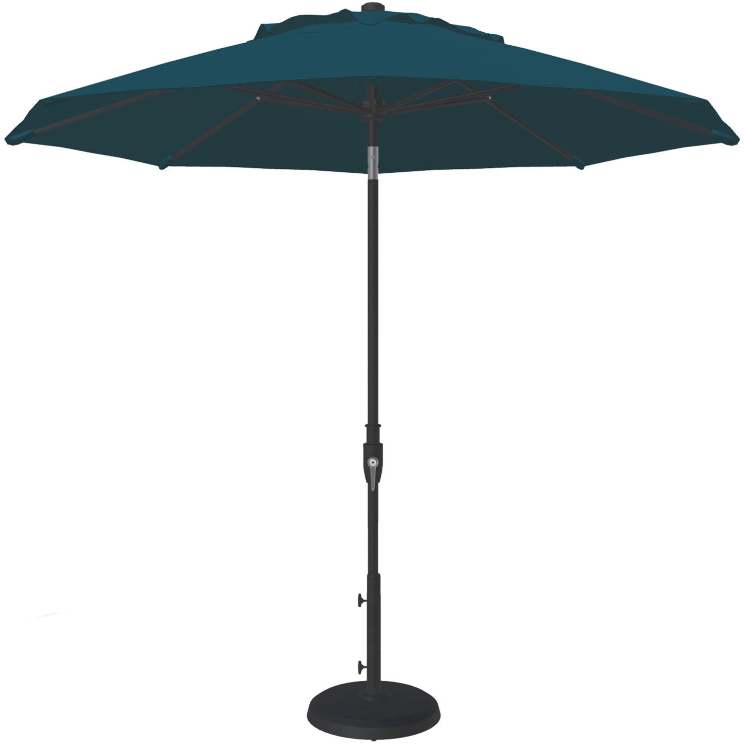 Stay cool in the summer sun under one of our patio umbrellas from Treasure Garden. These umbrellas are superb values, made with weatherproof fabrics, heavy-gauge aluminum poles, rugged PVC frames, and zinc-plated hardware. The 9-ft. diameter umbrellas feature an easy-to-use crank handle to open and close the umbrella and a simple, sliding collar mechanism on the pole to tilt the canopy, so your shade can follow the sun at any angle. The lift cord is made of rugged Kevlar mesh. The fabrics used are all 100% solution-dyed synthetics, resistant to both moisture and sun, and are woven of polyester or acrylic fibers. They will not rot, mildew nor fade and can be cleaned in place with soap and water. Each umbrella is supported by 8 ribs, features a single wind vent for stability and stands 96" tall. The pole features a black, powder-coat finish. An umbrella stand is essential for safe use and is sold separately.
