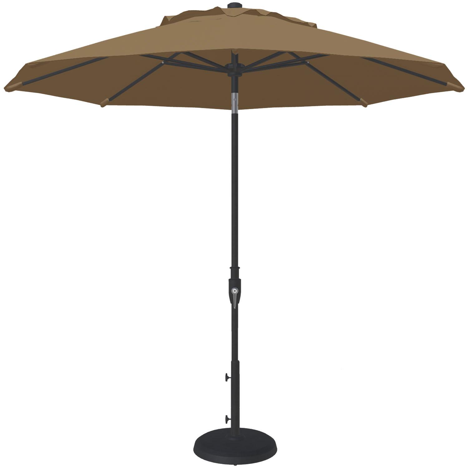 Stay cool in the summer sun under one of our patio umbrellas from Treasure Garden. These umbrellas are superb values, made with weatherproof fabrics, heavy-gauge aluminum poles, rugged PVC frames, and zinc-plated hardware. The 9-ft. diameter umbrellas feature an easy-to-use crank handle to open and close the umbrella and a simple, sliding collar mechanism on the pole to tilt the canopy, so your shade can follow the sun at any angle. The lift cord is made of rugged Kevlar mesh. The fabrics used are all 100% solution-dyed synthetics, resistant to both moisture and sun, and are woven of polyester or acrylic fibers. They will not rot, mildew nor fade and can be cleaned in place with soap and water. Each umbrella is supported by 8 ribs, features a single wind vent for stability and stands 96" tall. The pole features a black, powder-coat finish. An umbrella stand is essential for safe use and is sold separately.