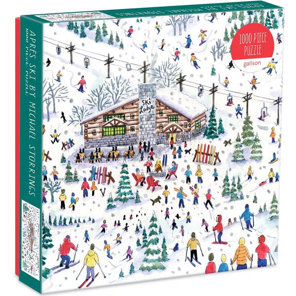 Award-winning designer, illustrator, and creative director Michael Storringshas created a fun and festive ski slope image for this 1000-pc. puzzle. When completed, the puzzle measures 27" x 20". Printed with non-toxic inks on 90% recycled paper.