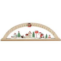 A laser-cut Christmas village scene ornaments this arched wood advent calendar that counts down the days to Christmas. 16.5” wide.