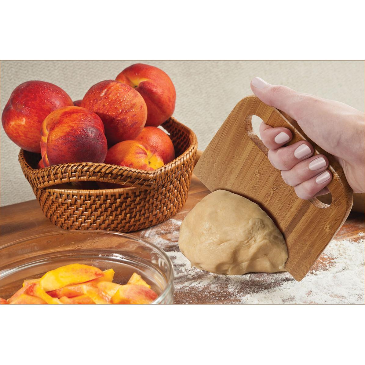 Made from 100-percent natural bamboo, Mrs. Anderson’s bench scraper is a professional-quality pastry tool for portioning dough into right-sized pieces and for scraping down work surfaces for clean up. The beveled front edge easily cuts dough and also scrapes up stuck-on dough from work surfaces. It’s also great for lifting cookies from a cookie sheet onto a cooling rack, cutting brownies into evenly sized pieces, chopping firm vegetables like celery, and more. 6” x 5.75”, hand wash.