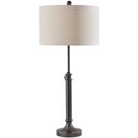 This versatile lamp is height-adjustable, making it a great light source everywhere from a console table in the living room to a nightstand in the bedroom. A decorative joint in the pole lets you adjust the height to anywhere between 26" and 34.5". The finishes on the Barton lamp add warmth, antique brass on the pole, the 15"-dia. shade in oatmeal textured linen. The Barton table lamp accommodates a 100 watt bulb controlled by a rotary on/off switch on the socket, 60" black power cord.