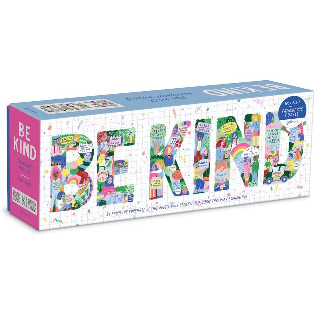 This 1,000-pc. landscape puzzle features an intricate design that will entertain and delight any puzzler. This inspirational jigsaw puzzle includes a 21 Day of Kindness Full-In Calendar that you can fill in with your own kindness prompts. The completed puzzle measures 39” x 14”. There is virtually no puzzle dust and the pieces are printed with non-toxic, water-based inks.
