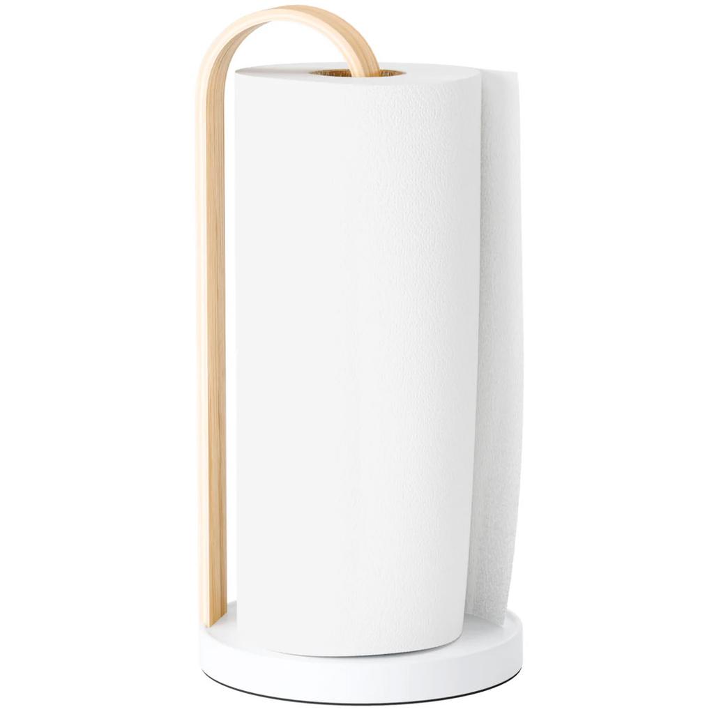 The Bellwood paper towel holder from Umbra is designed with a signature poplar-and-ash, bent-wood aesthetic and combines style with practicality. The weighted metal base ensures stability, allowing you to easily tear off a sheet with one hand, while the design ensures that both standard and jumbo towel rolls are easy to load.
