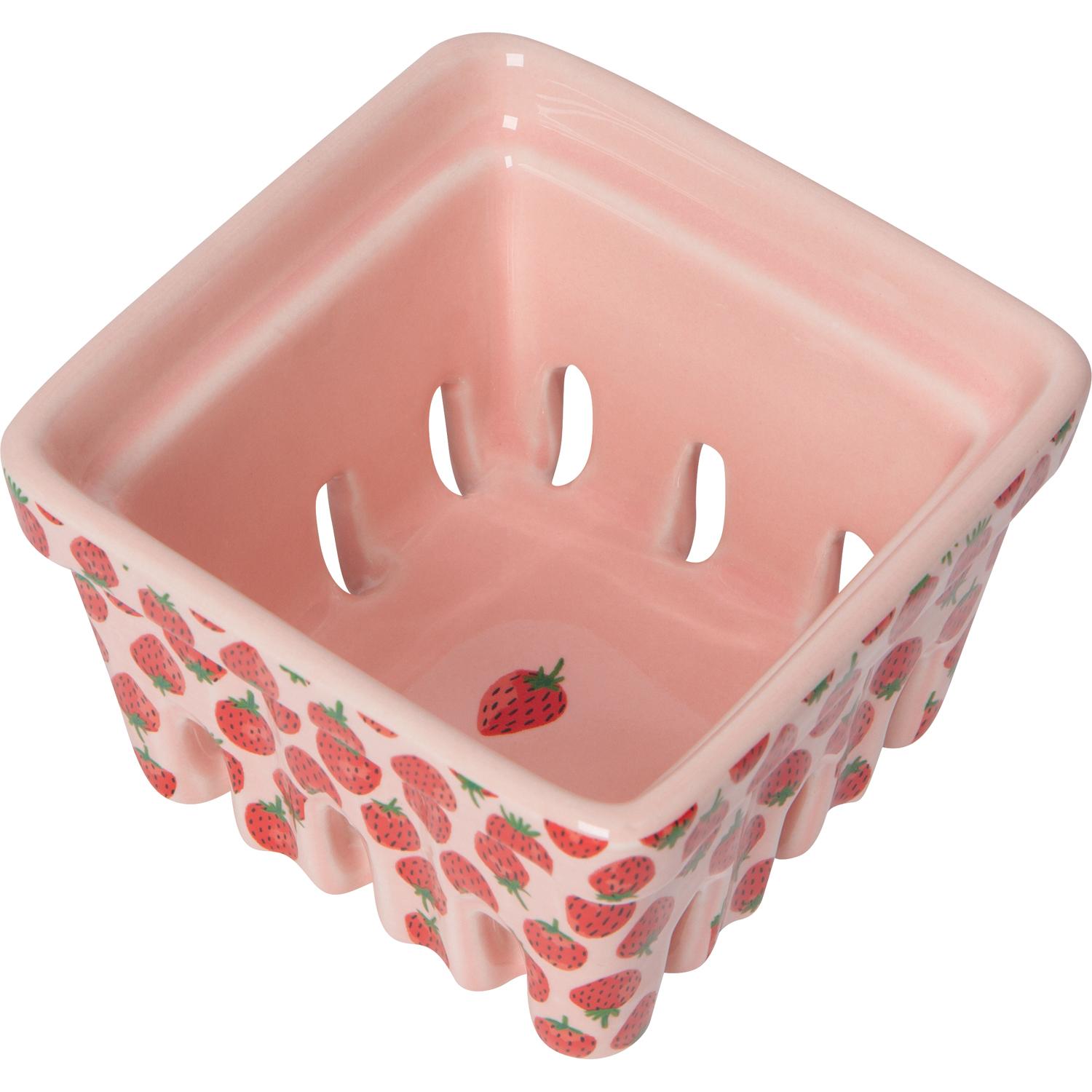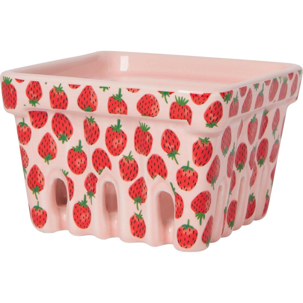 Brighten up your kitchen or table with this stoneware replica of a berry basket. It measures 4" x 4" and is safe in the dishwasher.