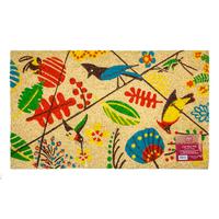 This vibrant, welcoming mat is made of natural coir fibers and dyed with colorfast, AZO-free pigments. Designed by Eugene artist Marcy Tippmann, the mat features a non-slip PVC backing and measures 18” x 30”. Best used in a covered area.