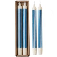 Each of these unscented 10” taper candles features grooved stripes and a burn time of approx. 6 hours.