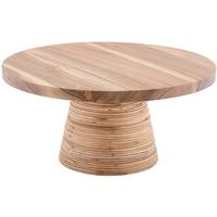 This gorgeous cake stand is made of solid acacia with a cane-wrapped wood base. The rich and varied grain of acacia makes each 12"- dia. stand unique in appearance. Do not immerse in water.