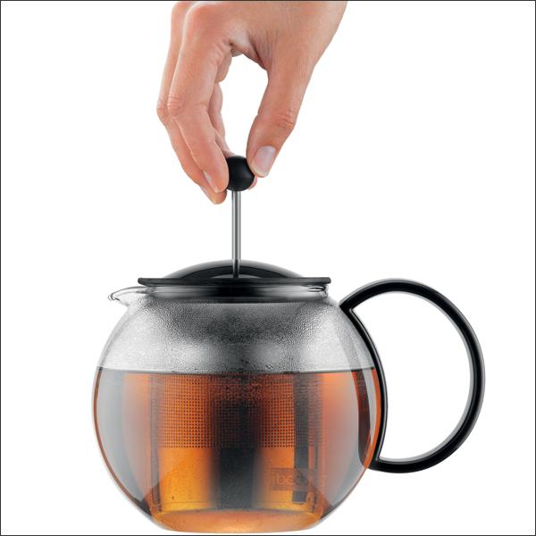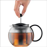 Tea and the British seem to be inseparable. When Bodum was asked by the British Tea Council to develop a new way of brewing tea, the Bodum tea press was born: Boil water... place your preferred tealeaves in the stainless-steel filter... pour in the hot water... wait 3-4 min. or to your preferred taste... press down the plunger. The brewing process has stopped - no need to remove the filter - no mess - no burned fingers, only the true unforgettable and delicious taste of your preferred tea. It's so easy! The classic Assam tea pot with its ultra-fine mesh, stainless-steel filter brews up to 34 ozs.of your favorite tea. It's made of brosilicate glass; the clear glass keeps the tea visible at all times, making it easy to decide when to stop the brewing. Everything can go in the dishwasher.
