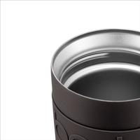 This mug from Bodum features a insulating double wall system that keeps both hot or cold beverages at their best. Made from two layers of stainless steel with an insulating air layer in between, this 12-oz. mug is wrapped a soft, non-slip silicone grip for comfort and security on the go. The double-wall insulation ensures that the outside stays cool to the touch no matter how hot the contents. Caution: make sure the Bodum travel mug stays upright when full. Due to safety reasons, the mug is not leakproof due to possible overpressure. Hand wash.