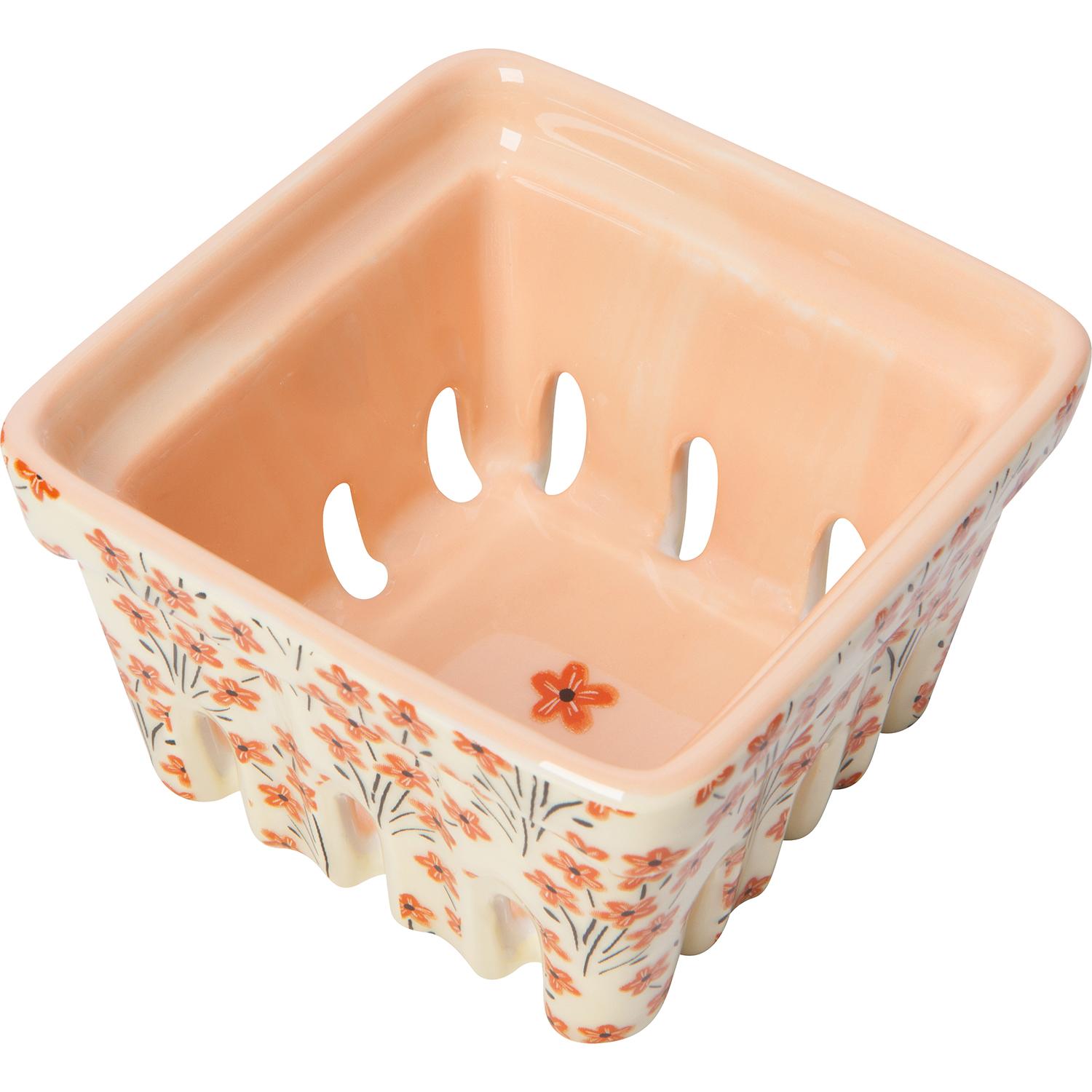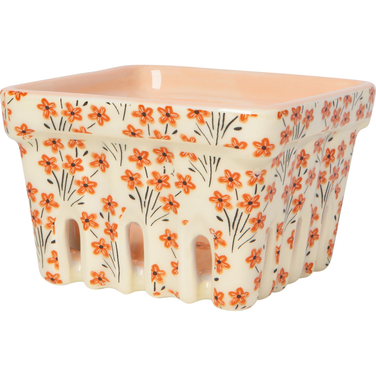 Inspired by classic paper-pulp berry baskets, this vibrant basket is made of rugged stoneware that’s safe in the microwave and dishwasher. 4” x 4”.