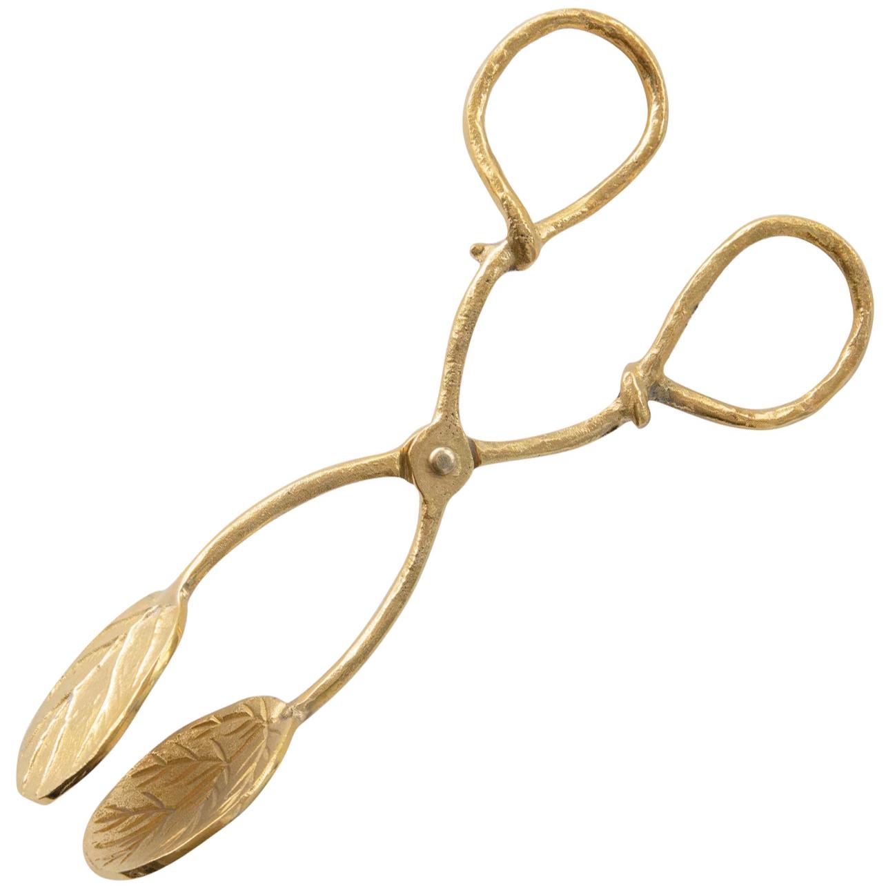 These elegant, leaf-shaped, brass-plated tongs dress up any meal. 7.75" long, hand washing recommended.