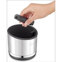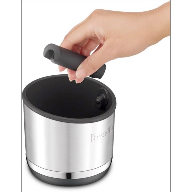 The smaller version of the best knock box going has the capacity to hold 10 pucks. The knock bar simply lifts out for easy cleaning of the box, and a non-slip rubber bottom keeps the box in place. Made of stainless steel with rubber trim, the Knock Box 10 measures 4" x 5" x 5" tall.