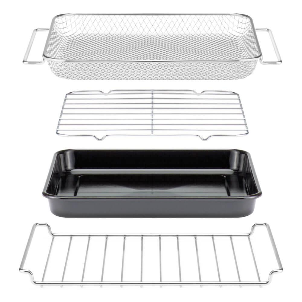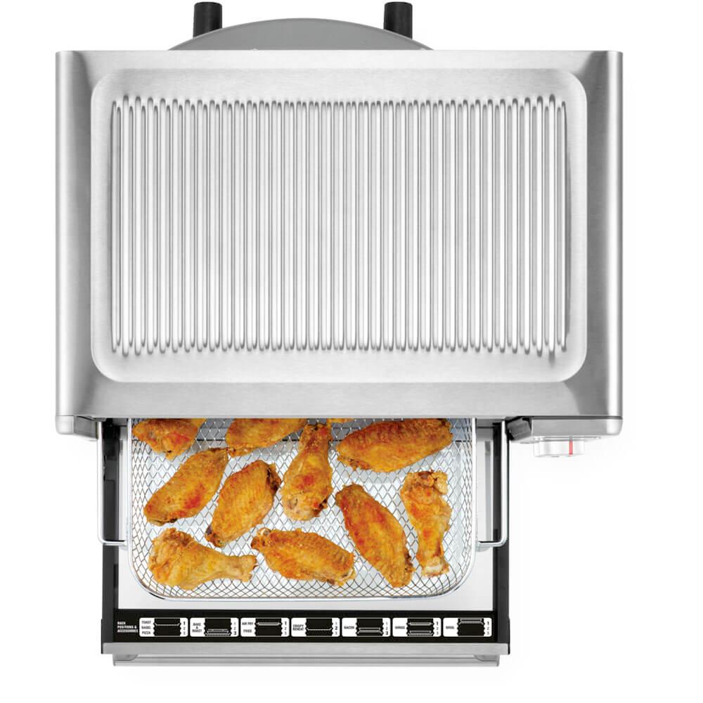 The 5 air fry functions are controlled by a simple dial, and the Crispy Reheat mode deploys even, radiant heat on both top and bottom with super convection, so you enjoy your fried or airfried leftovers without losing moisture on the inside for maximum crunch and flavor. If you're not air frying, there are five additional smart functions: Toast, Bagel, Pizza, Broil and Bake & Roast, for nearly endless culinary creations at the twist of the dial. There's even an "A Bit More" button that gives you total control and simple flexibility for whatever cooking method you're using. Of course, you can set you own custom cooking times and temperatures, too.
