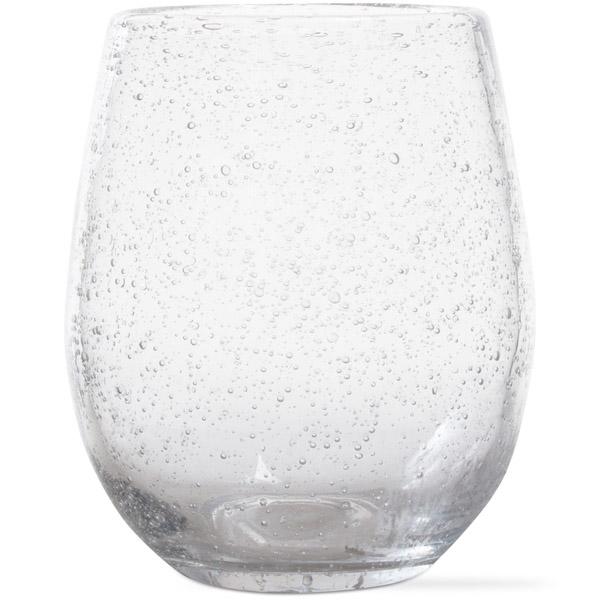 Tiny bubbles surround your wine...this stemless wine (or beverage) glass has a 14-oz. capacity and measures 4.25" tall and 3.74" in diameter. Dishwasher safe.