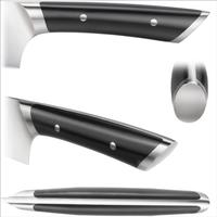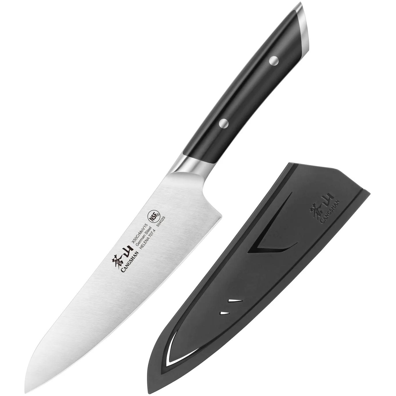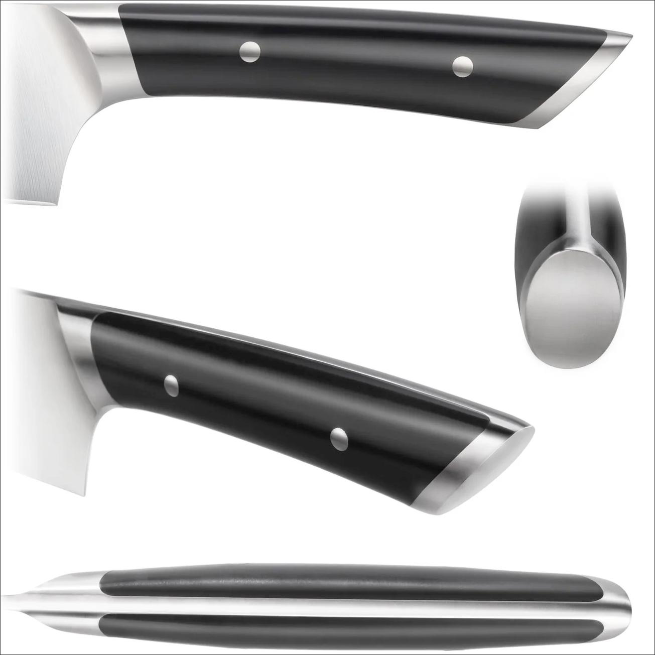 Affordable Helena knives from Cangshan are an elegantly minimalist interpretation of the modern kitchen knife. A slim, semi-bolster perfectly balances the knife's full tang while complementing the sleek, smooth lines of the handle. Two stain-resistant steel rivets solidly fasten the ergonomic handle to the blade, providing a secure, comfortable grip. Every blade is forged from high-alloy German X50CrMoV15 steel and meticulously heat treated, ensuring a razor-sharp edge with exceptional durability and edge retention. Blades are sharpened to a precise 16-degree angle, and rate a 58±2 on the Rockwell Hardness Scale. Slim, ergonomic handles are designed for the most comfortable fit, making each knife feel like an extension of the user's hand. Helena knives feature a lifetime manufacturer's warranty against defects in materials and/or craftsmanship. These knives a simply a superb value, offering high quality, excellent performance and a most affordable price.