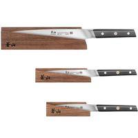 This nice set includes a 3.5" paring knife, a 5" serrated utility knife, and an 8" chef's knife.