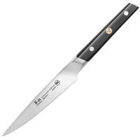 TC Series knives from Cangshan are full-tang knives fully forged from Swedish 14C28N steel, an alloy that measures 59 +/- 2 on the Rockwell Hardness Scale. The steel offers exceptional sharpness and holds an edge up to 5 times longer than German X50Cr15MoV steel. The patent-pending design of TC series cutlery focuses on the uniquely tapered tang, which makes each knife comfortable and perfect for precise cutting. Each TC Series knife comes with a carbonized solid-ash, half-open magnetic sheath. TC Series knives are NSF certified for commercial use and carry a lifetime manurfacturer's warranty against defects in materials and workmanship.