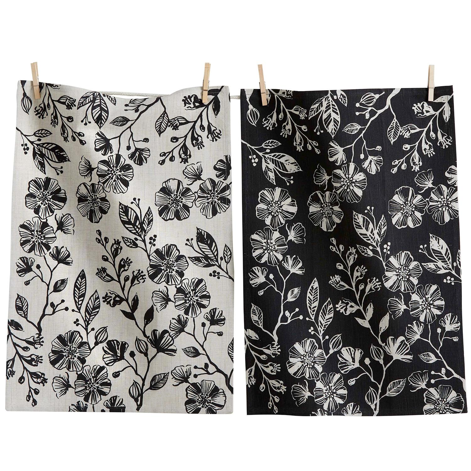 Canyon Print Kitchen Towels Set/2 Floral Black