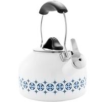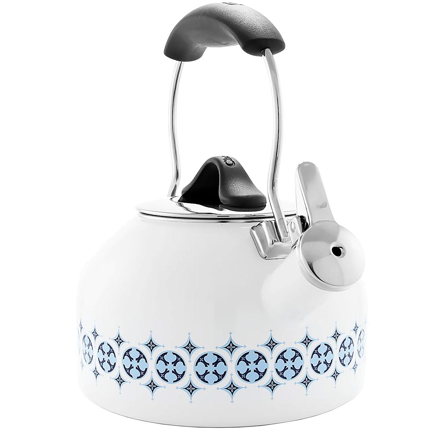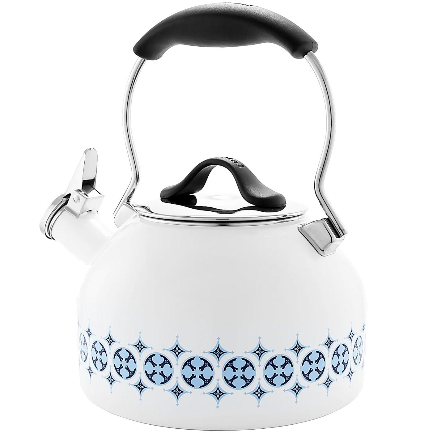Chantal’s 1.8-qt. Talavera kettle is made with a high-tensile, carbon-steel body paired with 18/8 stainless-steel details. It showcases a one-piece design featuring a wide, flat bottom for even heating and a quick boil on any type of stovetop, including magnetic induction. It also boasts a boiler enamel interior, the gold standard in commercial-grade products. Sourced from a leading US provider of porcelain glass enamel, this non-reactive layer ensures flavor integrity and the utmost in food safety. The Talavera kettle lets you know your water is boiling with a gentle whistle, and features an ergonomic, stay-cool handle.