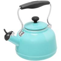 Chantal's aptly named Vintage kettle features retro styling along with modern features. The kettle body is made in one piece of carbon steel; it heats quickly on any stovetop, including magnetic induction. High-quality enamel covers both the exterior and the interior to stand up to calcium and mineral deposits. The handle and the knob on the lid are made of stay-cool material, and when the water boils it activates a compelling whistle. 1.7-qt. capacity.