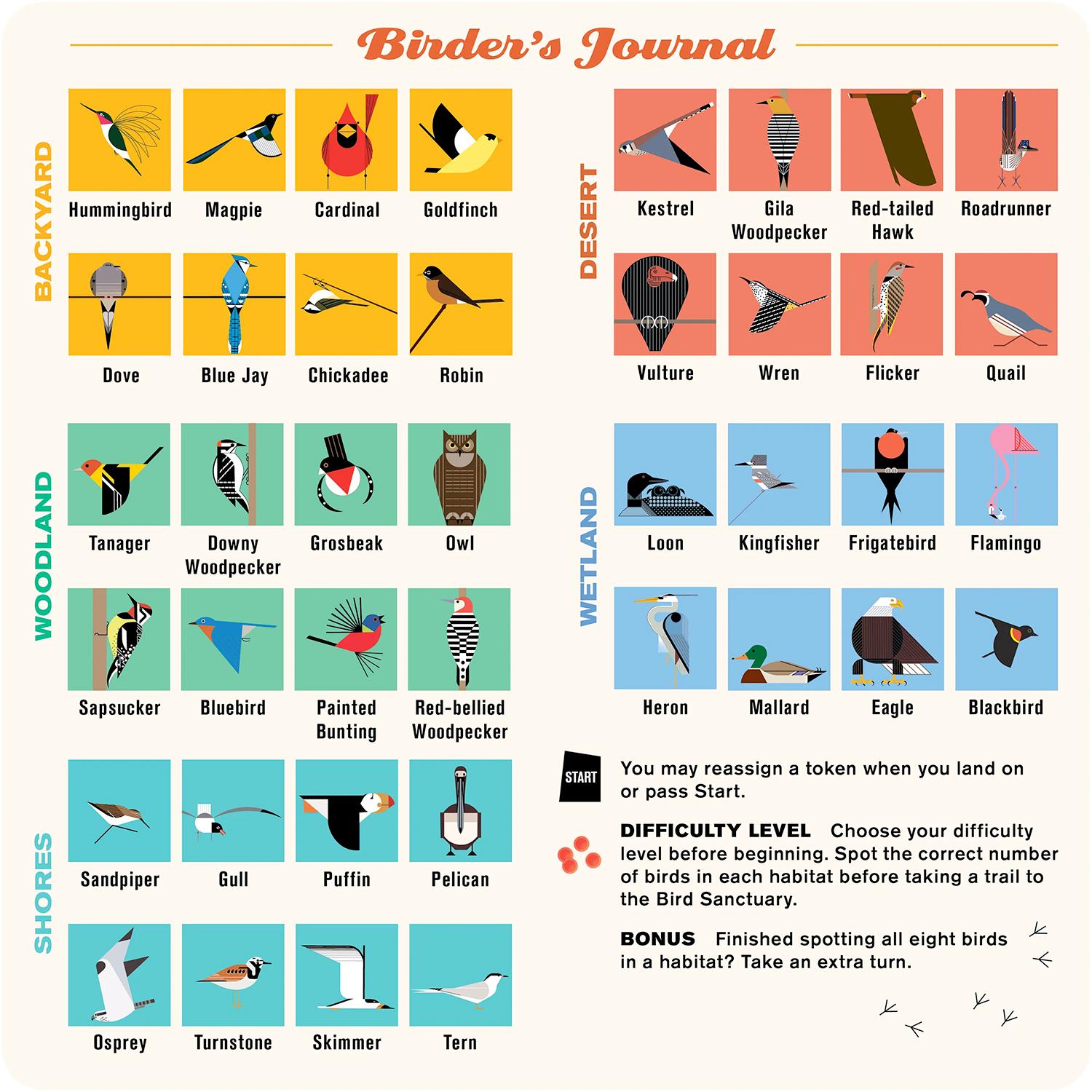Grab your binoculars and keep an eagle eye to the sky with Charley Harper’s Spot the Birds. Peregrinate through the board’s five habitats—the Backyard, the Desert, the Woodland, the Wetland, and the Shores—and track each bird you spot. Along the way, you’ll discover how to be a good bird steward. But watch out—you’ll need to dodge storms, avoid falling in a river, and beware of birds that poop on your head (it happens). Be the first to reach the Bird Sanctuary, and you’ll rule the roost!