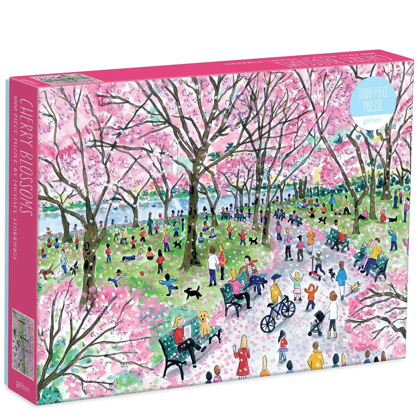 Award-winning artist Michael Storrings captures the beauty of cherry blossom season in Washington, DC. in this 1,000-pc. puzzle. The puzzle greyboard contains 90% recycled paper, and the completed puzzle measures 20” x 27”.