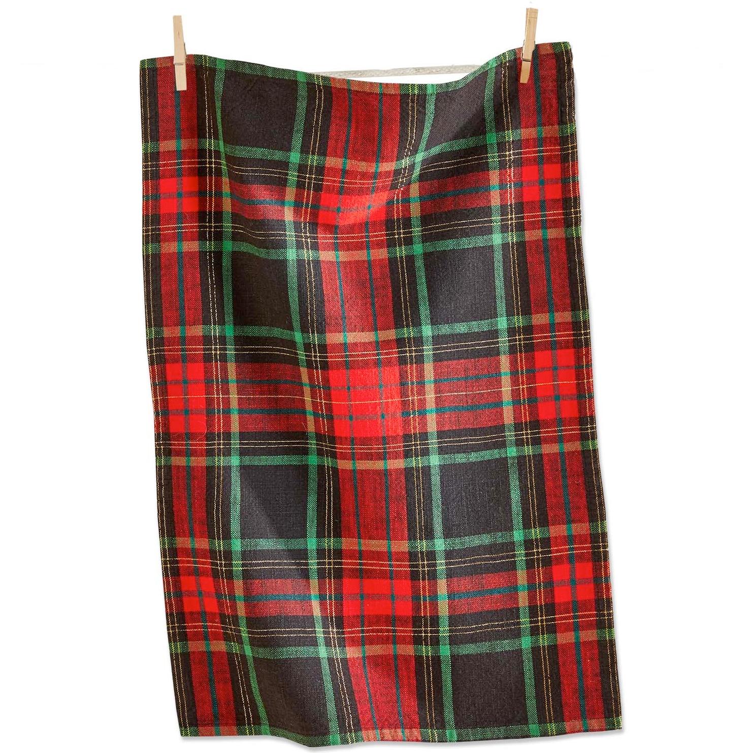 A classic red, green and black plaid makes this a perfect holiday kitchen towel. It’s made of 100% cotton with gold Lurex threads and measures 18” x 26”. Machine wash cold, lay flat or hang to dry.