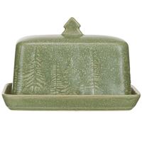 This lovely butter dish features an embossed tree motif. It's made of rugged stoneware and is safe in the dishwasher and microwave.