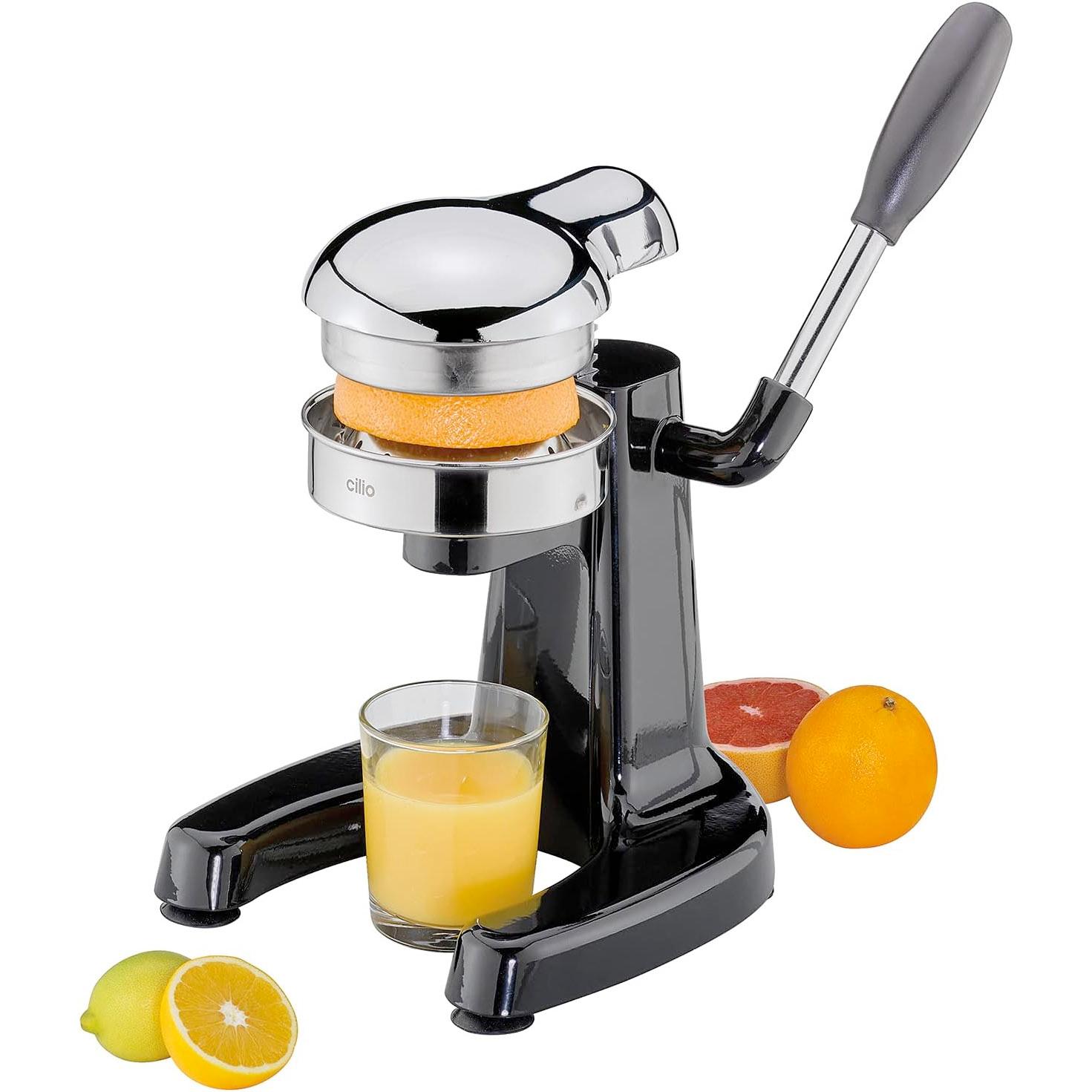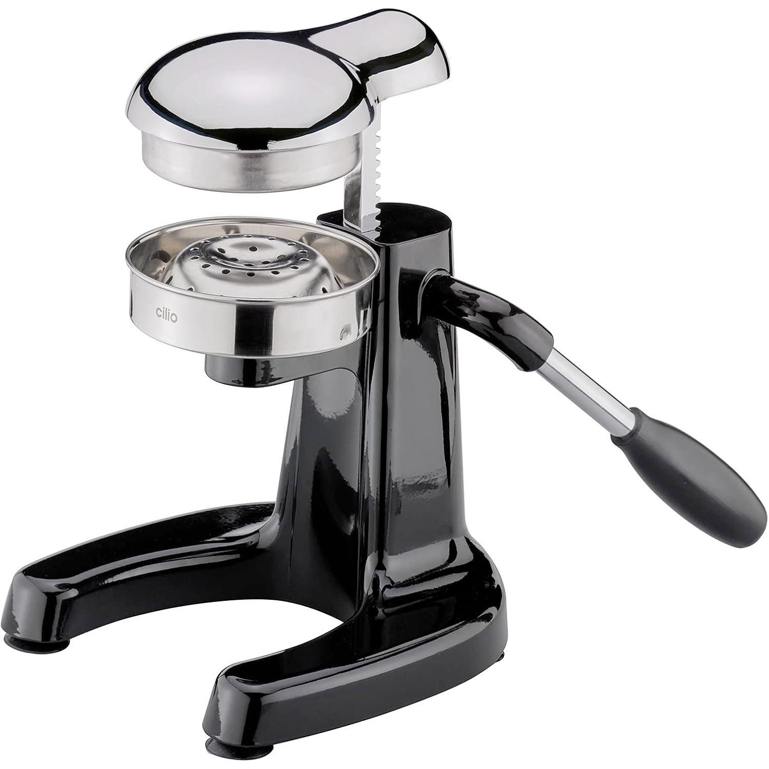 Pressing citrus fruit creates the sweetest juice, as the bitter pith is not disturbed. And this compact, rugged juicer from Germany's Cilio is an efficient, easy-to-use press that extracts all the juice from limes, lemons, oranges, and grapefruit, directly into your glass. The base is made of heavy cast aluminum with four rubber suction feet to keep it in place on your counter, the long handle gives you the leverage you need to extract every last drop of juice and a strainer filters out seeds and pulp. The juicing cone, strainer and funnel are made of stainless steel and go in the dishwasher for clean up. The Positano juicer measures just 9" tall.