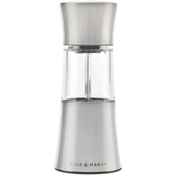 This unique Cole & Mason mill employs a two-step process that releases maximum flavor from spices, herbs and chilis. As you twist the mill, ingredients are first shredded, then ground, before being relased. The grind size is adjustable, and the grinding mechanism quickly and easily comes our for cleaning. Stainless-steel and acrylic construction, 2.6" in diameter and high.