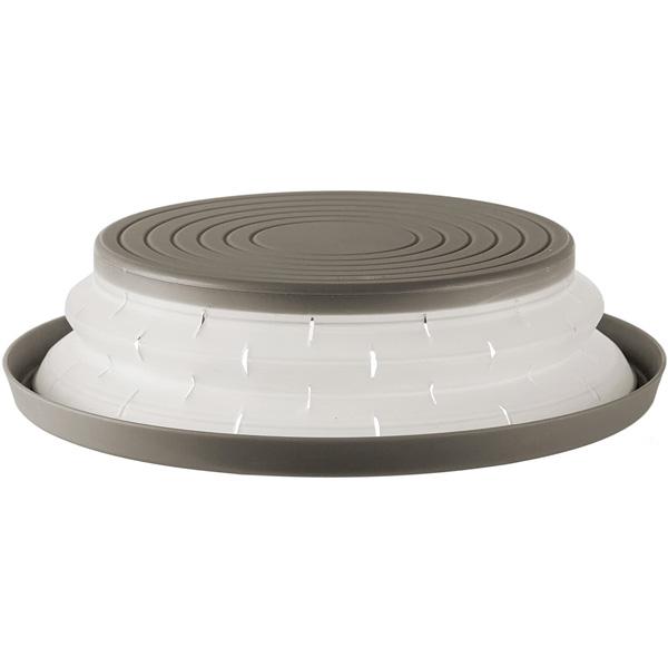 Keep your microwave clean and your food hot with this collapsible food cover. It's made of high-heat, BPA-free polypropylene that's naturally non-stick, and it goes in the dishwasher for easy clean-up. Steam vents prevent the buildup of excess heat, and the lip on the bottom rim stays cool for easy lifting. It measures 10.5" in diameter and 2.75" high, collapsing to just 1" high. Flip it over and it makes a handy caddy for a hot dish or plate.