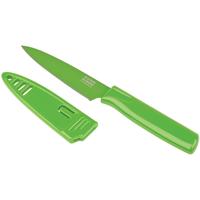 A colorful Coloir non-stick 4" paring knives is a kitchen essential, ready for all those little jobs, at a price that makes you unafraid to use it. Colori paring knives have a very sharp, Japanese carbon-steel blade with a non-stick surface, so they glide through food. The slip-on plastic sheath protect the edge and your hands and makes these knives convenient for picnics and camping trips.