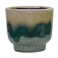 This charming terra cotta pot features a reactive crackle glaze that ensures that each example is unique in appearance. It measures 5.25" in diameter and 4.75" tall and will hold a 4" grower's pot.