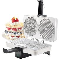 Pizzelles are sweet Italian cookies, traditionally flavored with anise, that are baked into an ornate pattern. The Cucina Pro pizzelle baker turns out two 5" pizzelles at a time in two different patterns. It features a traditional, highly-polished interior and extra-thick baking plates that give you consistent results and easy release. Complete instructions and recipes are included.