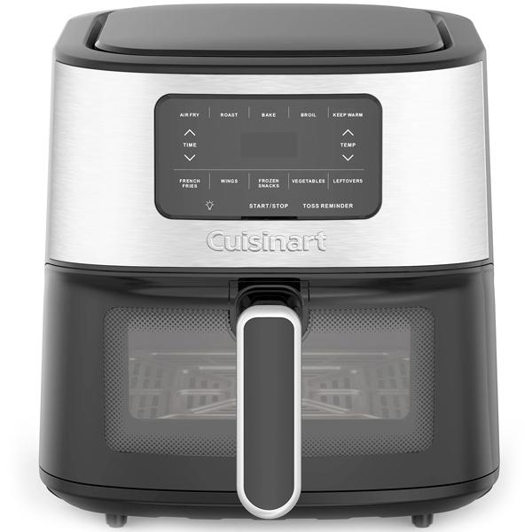 Cook everything from simple snacks to main meals with the versatile Cuisinart Basket air fryer. This countertop cooker lightens up fried foods with fast and even hot-air-powered cooking - using little or no oil - for making healthy meals with a crispy crunch.Five pre-programmed settings, a toss notification to flip food mid-way through cooking, and a convenient viewing window make it easy to air fry, roast, bake, broil, and warm food with delicious results.