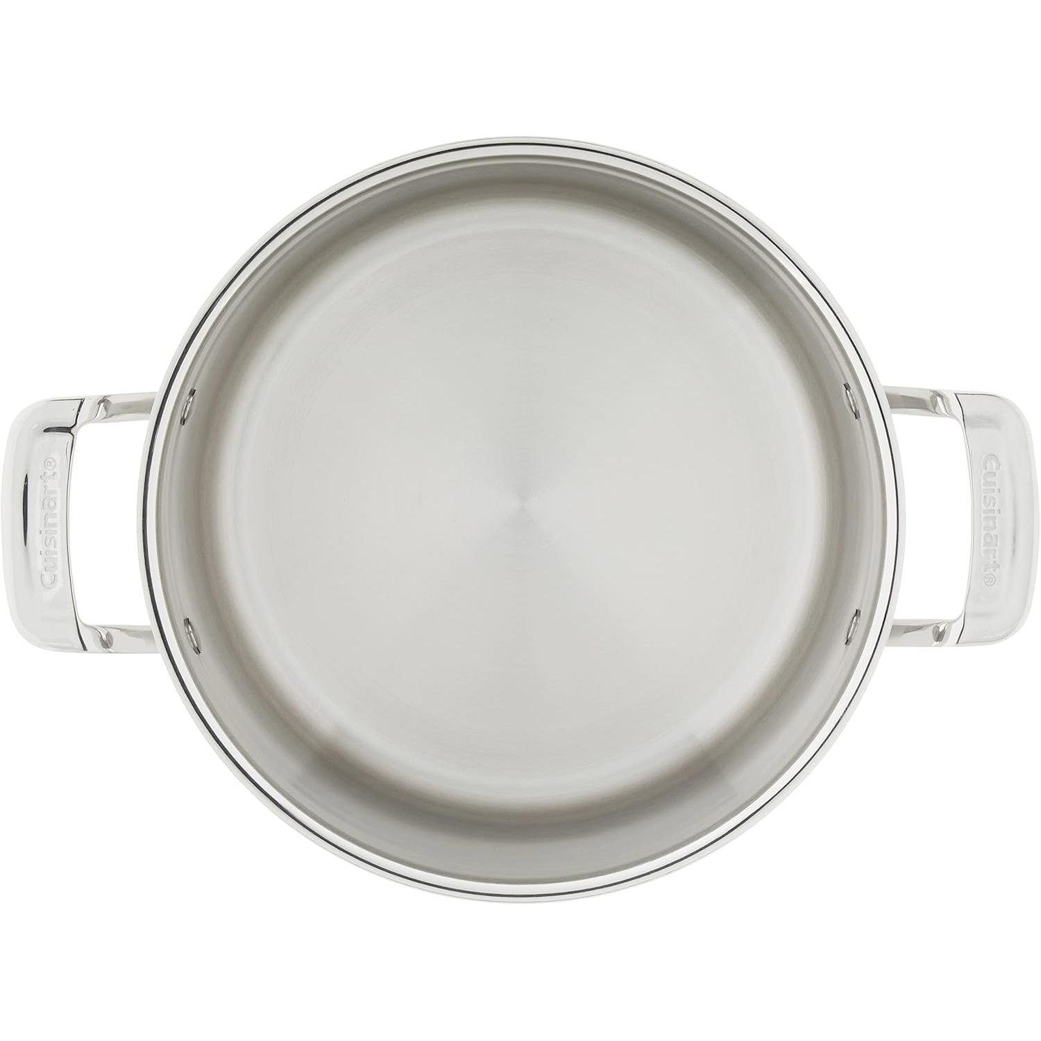 Cuisinart's Multi-Clad cookware gives you high-performance, multi-layer, "clad" pots and pans at simply sensational prices. Each Multi-Clad pan, bottoms, sides, and all, is made of three layers of bonded metals, pure aluminum in the center for superb heat conduction, rugged 18/10 stainless steel on the inside and outside for long-lasting beauty and durability. The cooking surfaces are mirror-polished stainless, the pan exteriors are brushed. Riveted handles, tight-fitting lids, and dripless rims complete the picture. Multi-Clad Pro cookware performs beautifully on all stovetops, including magnetic induction and is safe in the dishwasher. It's simply a tremendous value. Limited lifetime warranty.