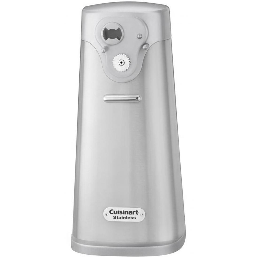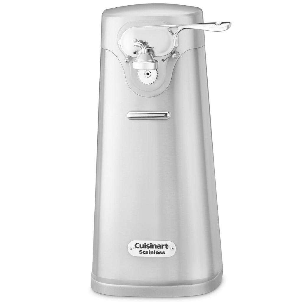 This elegant, brushed-stainless-steel can opener opens any standard-size cans with just one touch. The blade effortlessly cuts through cans that are held in place by the removable magnetic lid holder. The extra-wide base guards against tipping, while the removable magnetic lid holder aids in thorough clean up. 4.5" x 4.5" x 9.75", 3- year limited manufacturer's warranty.
