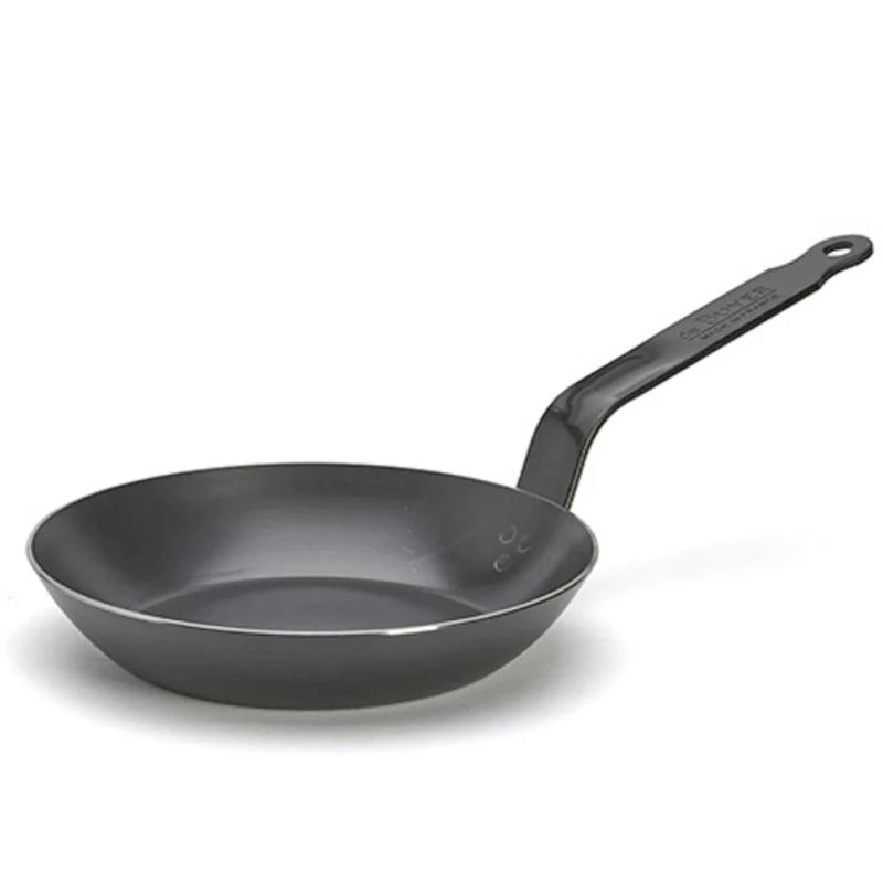 Offering professional-grade performance at exceptional prices, French-made Blue Carbon Steel frypans deliver superior heat distribution and retention in a lighter, more maneuverable package than cast-iron. The unique blue finish, achieved through a special heat treatment process, provides initial corrosion resistance and aids in the seasoning process. With proper care, these old-school pans will develop a beautiful, dark patina over time, enhancing their non-stick properties and becoming cherished kitchen heirlooms. De Buyer Blue Carbon Steel frypans are oven-safe up to 500° F and compatible with any stovetop, including magnetic induction. The welded handles get hot; we recommend the use of a De Buyer neoprene handle sleeve. Watch the video below to de-mystify the seasoning process.