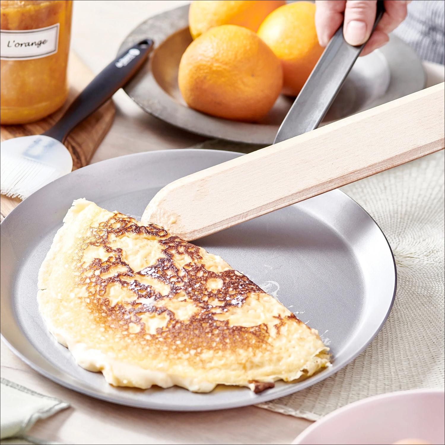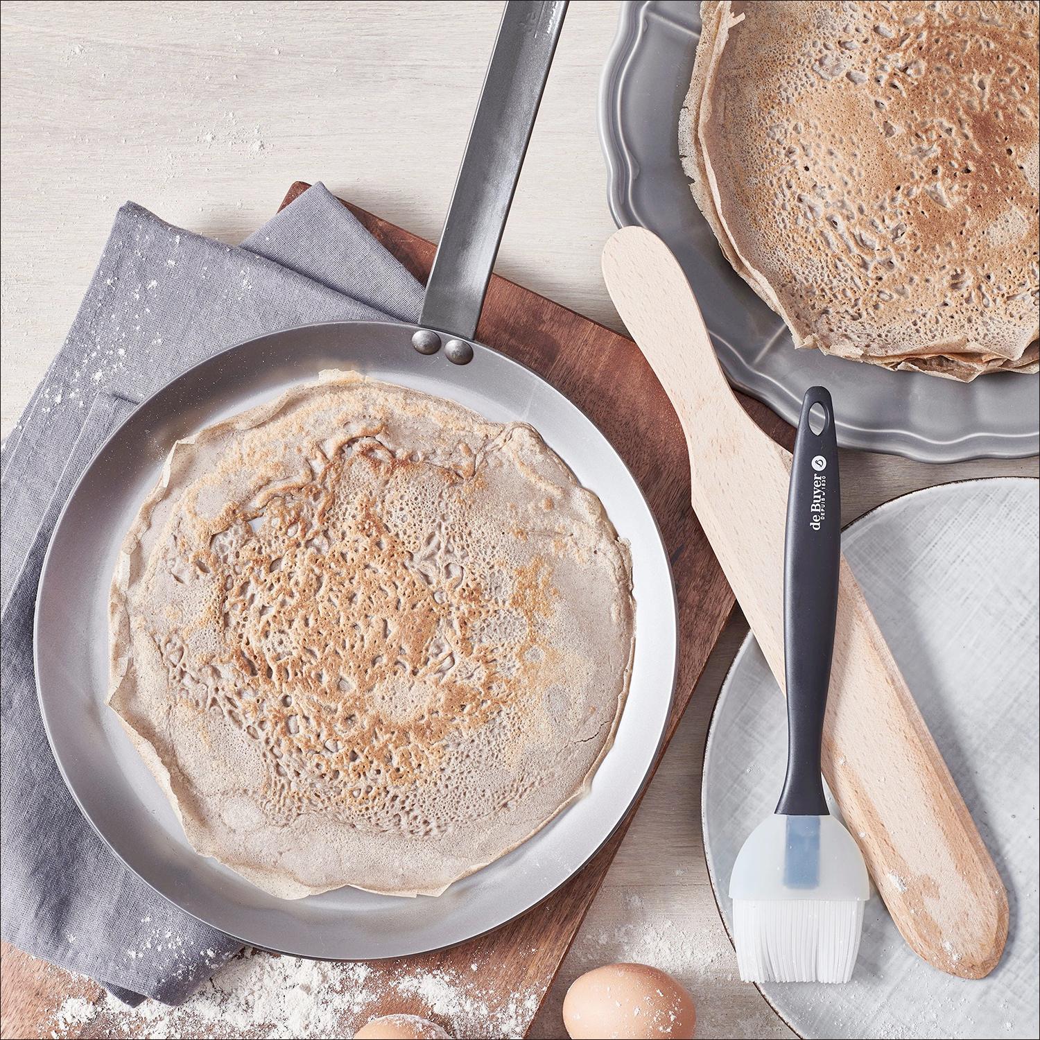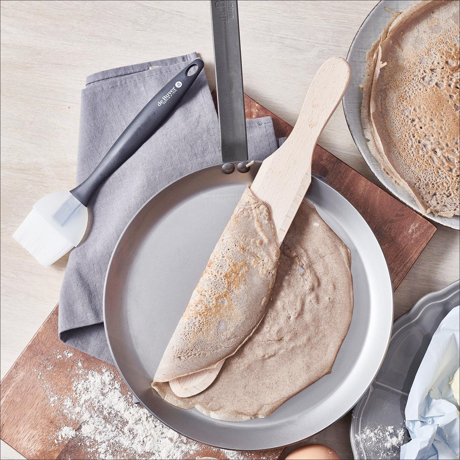 A great gift for a beginner or a seasoned pro, this crepe kit from De Buyer sets you up for crepe perfection. This all-in-one set includes a 10.25" Mineral B carbon-steel crepe pan, known for its superior heat control and naturally nonstick surface after seasoning. A beech crepe spatula helps you flip with ease, while the included silicone brush makes it simple to prepare the pan for effortless crepe-flipping. The included recipe for classic French crepes, savory or sweet, completes the set. The Mineral B pan does require seasoning and must be hand-washed; watch the video below to de-mystify the seasoning process.
