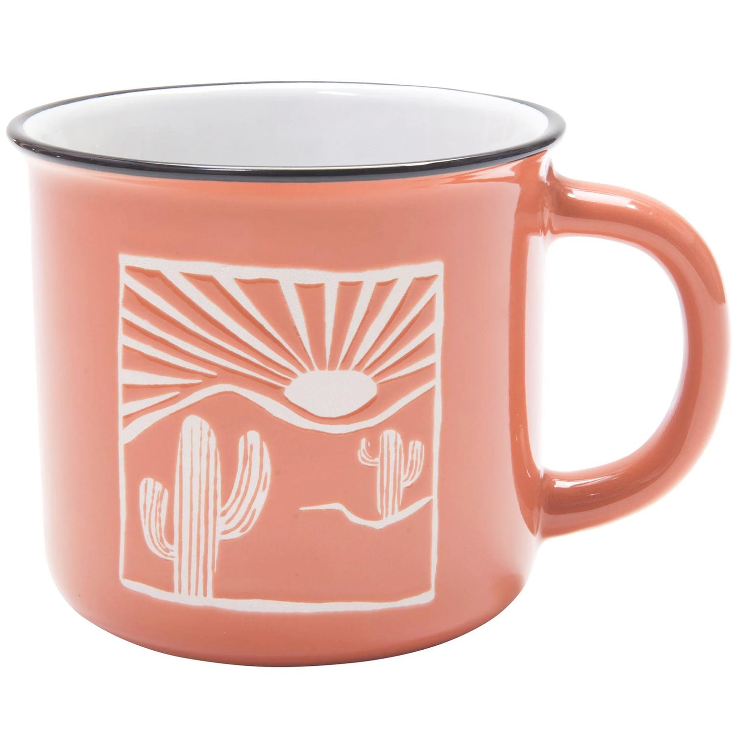 Styled after the classic tin camp mug, with a curved lip and a roomy handle, this beautiful stoneware mug features an etched and hand-painted design. Dishwasher and microwave safe, 13.75-oz. capacity.