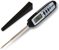 A great thermometer for the kitchen and the grill, the DT450X from CDN is NSF certified, with a splash-resistant, shatterproof plastic case coated with Bio-Cote, and a 2.75" stainless-steel stem. It reads from -40 degrees F to 450 degrees F, with a 6-8 second response time. It's particularly well-suited for thinner cuts of meat, fish and poultry. A data-hold button locks in the temperature reading, so you can pull out the thermometer for reading. The stem sheath doubles as a handle extension to keep your hand farther from the heat. Battery included.