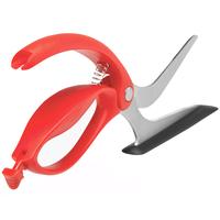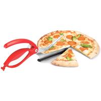 With the Scizza, perfect pizza slices are as easy as slide, slice and serve. The Scizza features a nylon spatula base that slides under your pizza, thin crust or thick crust alike. The scissors cutting action leaves toppings in place while you cut, then a gentle squeeze captures the slice for lifting and serving. Unlike using a rolling pizza wheel, the spatula base protects non-stick baking surfaces from cuts and lets you cut slices directly on a baking stone without damaging the cutting edges of the scissors. The stainless steel blades easily come apart for sharpening and lock closed for safe storage. The Scizza is dishwasher safe and measures 12.6" long.