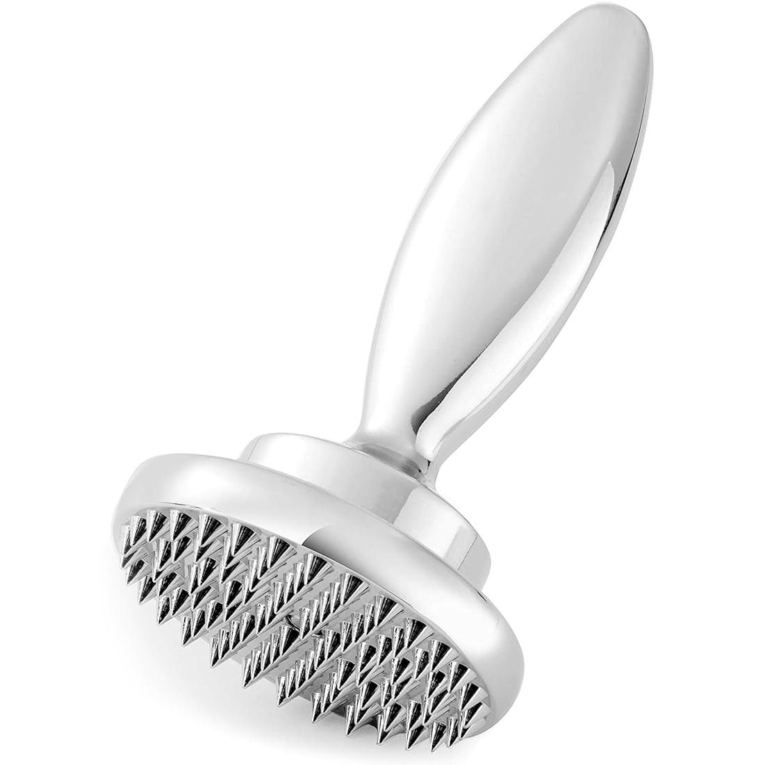 Use the flat side of the disc for flattening chicken breasts or crushing nuts and garlic, the toothed side for tenderizing tough cuts of meat. The handle screws on and off, so you can easily reverse the 3.25"-dia. disc, and it goes in the dishwasher for clean up (after removing the plastic handle gasket). It's well-balanced for ease of use, weighs nearly 2 lbs. for quick results, and is made of chrome-plated zinc for durabiity. The oversized handle provides a comfortable, secure grip.