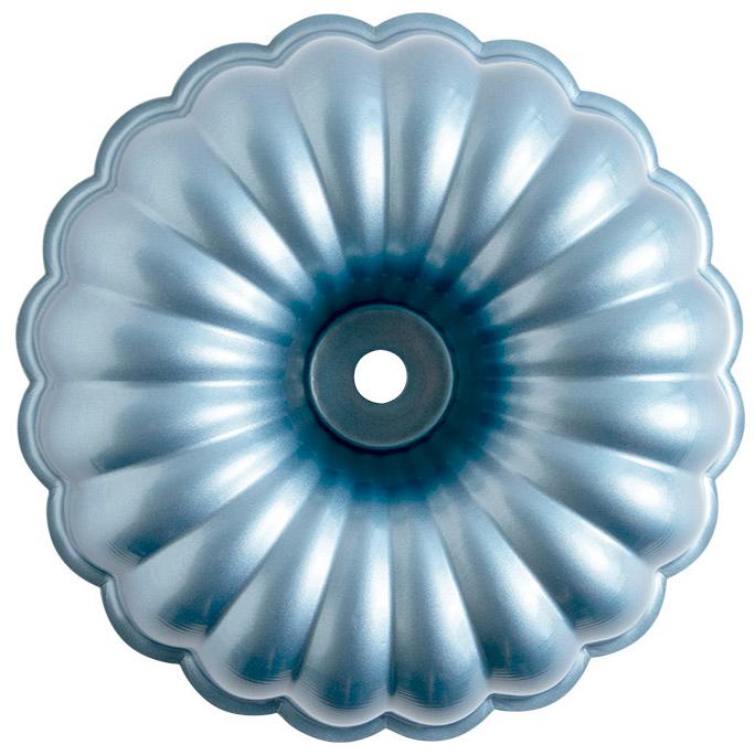 Featuring beautifully scalloped sides, balanced symmetry, and a fluted central tube, the Elegant Party Bundt pan, finished in Twilight Blue, allows heat to flow through the middle of the batter, ensuring even baking—even for dense cakes. Crafted from lightweight formed aluminum, it offers easy handling for bakers of all experience levels. The smooth silver nonstick interior ensures cakes release cleanly with minimal effort and quick cleanup. With a 12-cup capacity, this Bundt pan delivers professional results and a stunning presentation for birthdays, holidays, or special occasions. Oven safe up to 400°F, hand washing is recommended to preserve the finish.