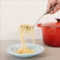 Rugged for the kitchen, elegant for the table, this stainless-steel pasta server features a weighted, contoured, brushed handle that eliminates fingerprints and smudges, and a polished head. It measures 11.75" long with a hanging hole in the handle and is dishwasher safe.