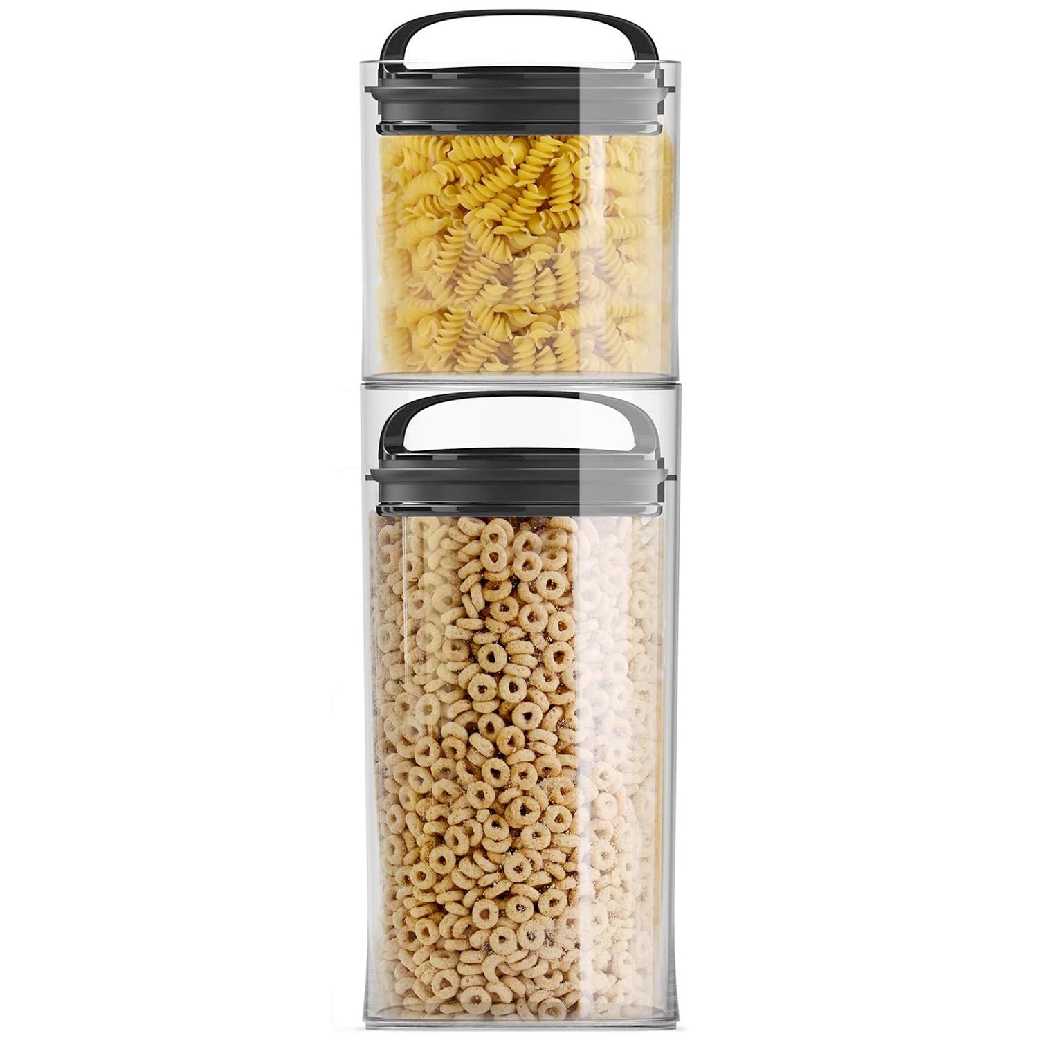 Evak canisters from Prepara feature a patented twin-valve system that pushes out all the air and maintains an airtight seal, keeping food fresher, longer. Simply push down on the lid’s loop handle to evacuate all the air from the canister; to open the canister again, just pull up on the handle. You get airtight, vacuum storage easily and quickly. Evak canisters are made of borosilicate glass and stainless steel; no plastic touches your stored food. The glass canister is dishwasher safe, the lid wipes clean.